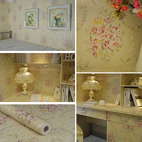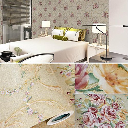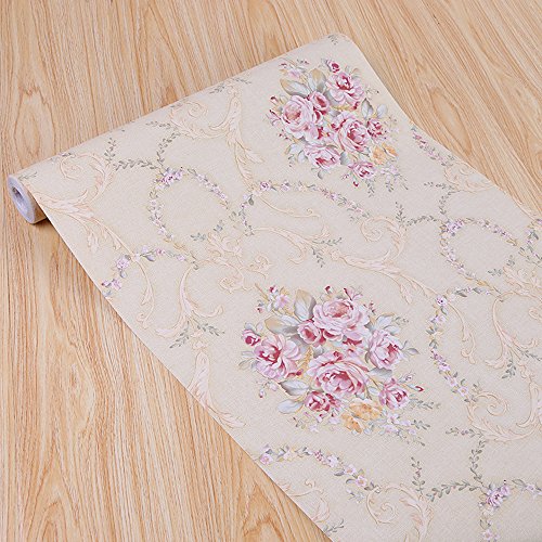 SimpleLife4U Vintage Rose Contact Paper Peel& Stick Shelf Liner Drawer Locker Sticker Beige 17.7 Inch By 9.8 Feet