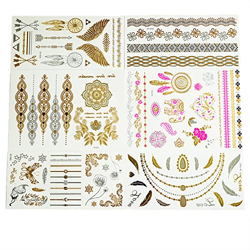 - Premium Quality - Very high quality and intricate designs. Nice metallic shine and these metallic temporary fake tattoos will stay on for several days. Super pigmented, they will give you an extra spark of beauty. Glamorous and fun, easily customize and create your own unique stunning body art. Great & fun metallic temporary tattoos, many designs to choose from! Highly recommend with the beautiful patterns and they are super shimmery!