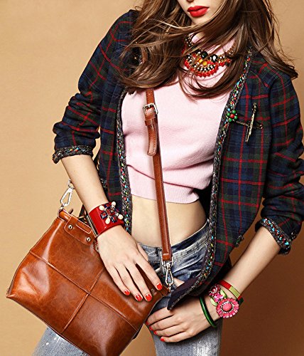 [COWHIDE GENUINE LEATHER] Material: Top-layer cowhide, the most valuable piece of a cowhide after a precise splitting process, thick split cowskin leather with coating and oiling finish. It's naturally soft, shiny, flexible, anti-scratch and durable even years later, which is way better than other leathers. It may have slight natural odor at first, but the smell will disappear after a couple days' airing out