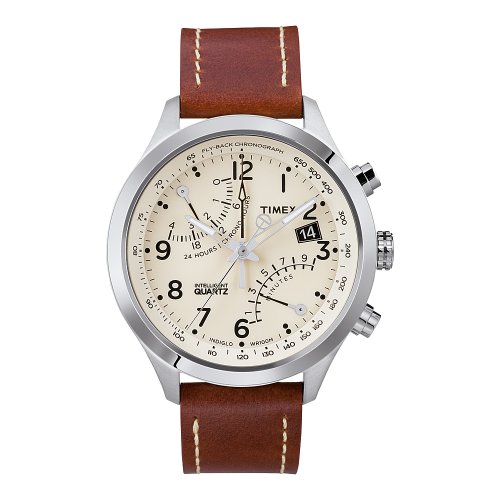 -. Title : Timex Intelligent Quartz T2N932 Mens Cream Brown Fly-Back Chronograph Watch