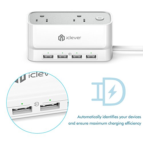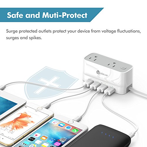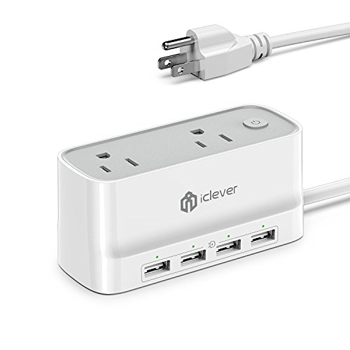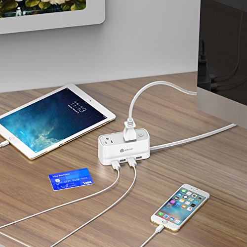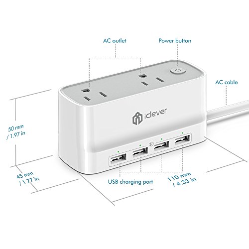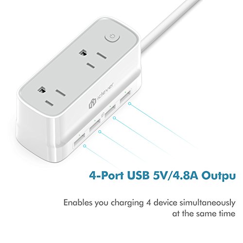 [Mini & Smart] iClever BoostStrip IC-BS01 Portable Smart Power Strip / USB Charger, 4320 Joules Surge Protector with 2 AC Outlet 4 USB Port, 5ft Extension Cord for Indoor & Outdoor, White