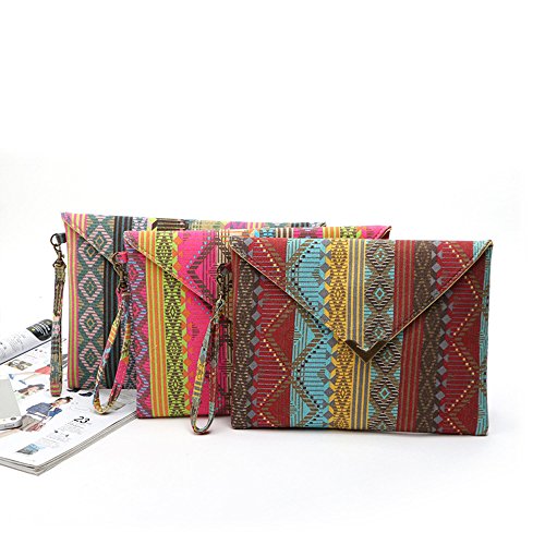 -. Feature : Large Size: (W)10.7 x (H)7.8 x (D)0.6 inches; 0.22 pounds / Material: Canvas, Polyester lining; Snap closure / 1 main compartment; 1 removable wristlet strap / Bohemian style, beautiful and fashion looking / A big envelope clutch organizes everything such as big cellphone, wallet, keys, small cosmetics necessities, tissue.