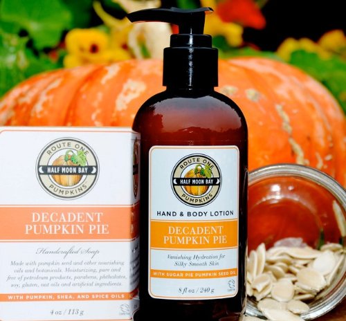All natural hand and body lotion made with real Cinderella pumpkin seed extracts from Half Moon Bay, CA, known as the pumpkin capital of the world. Grown without pesticides or fertilizers by Tunitas Creek Family Farm.