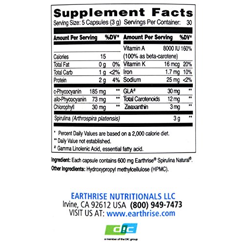 Product DescriptionEarthrise Spirulina Natural - 600 mg - 150 Capsules0