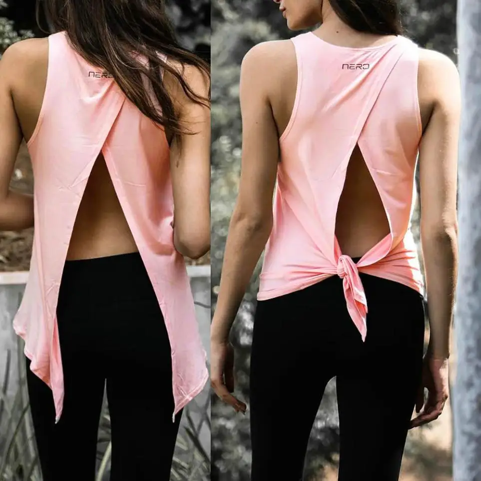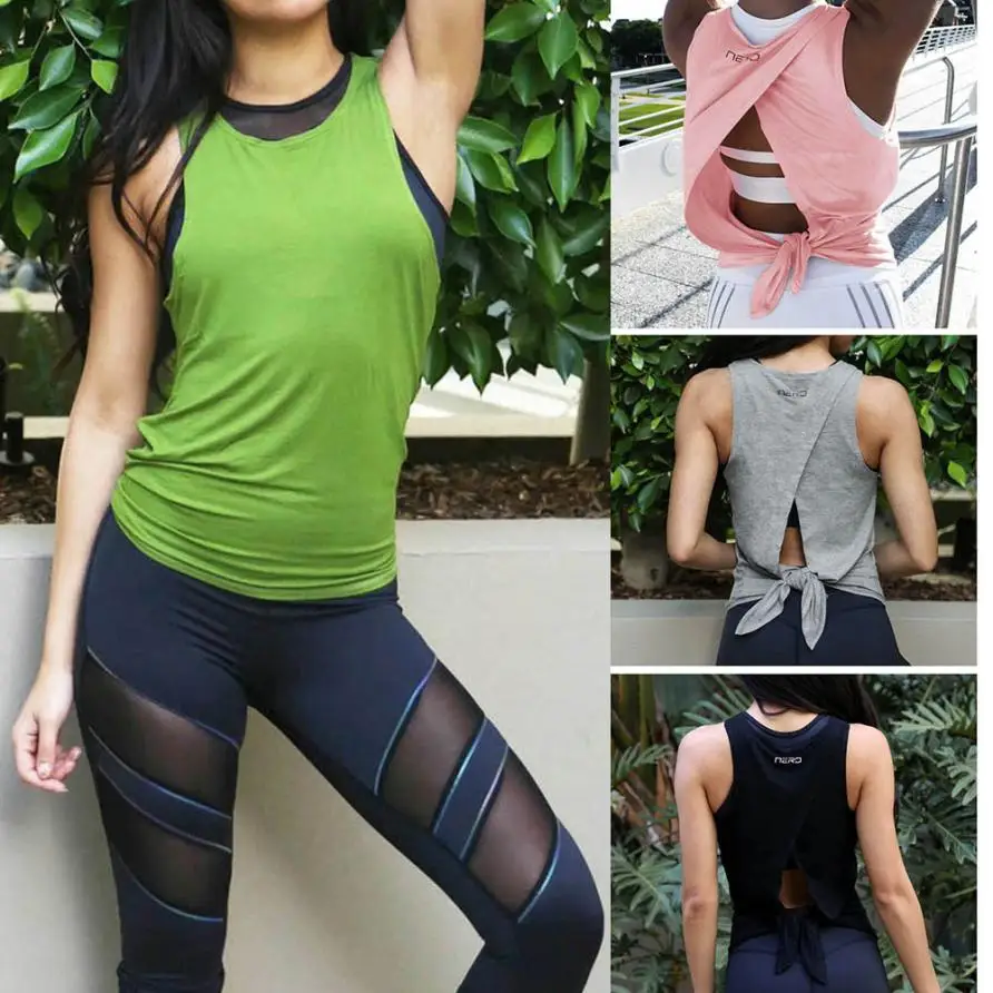 Model Number:Women Yoga Split Sexy Loose Gym Sport Vest Training Run Tops T Shirt
