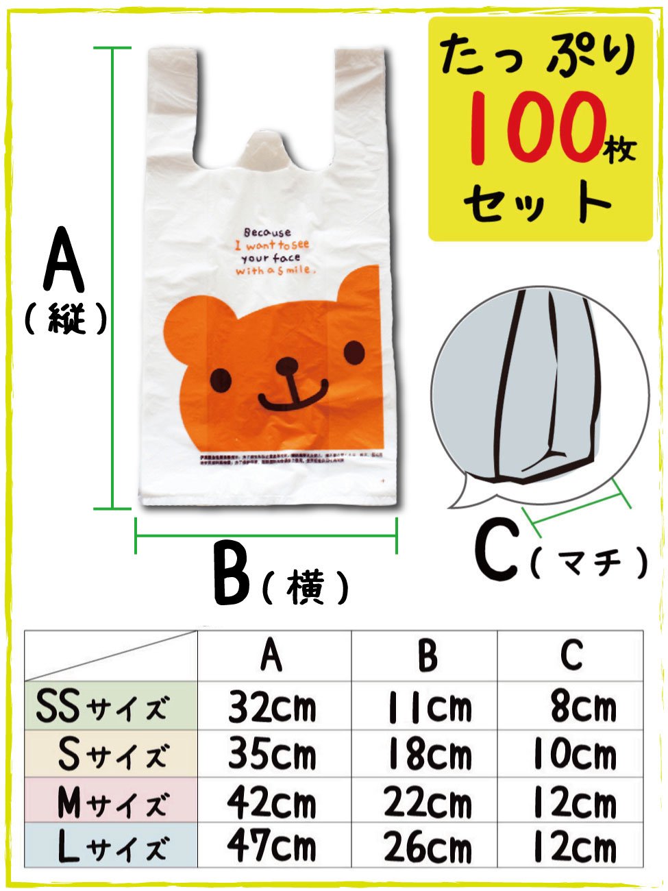 M size: length 42 cm × width 22 cm × side gusset 12 cm thickness: 0.016 mm