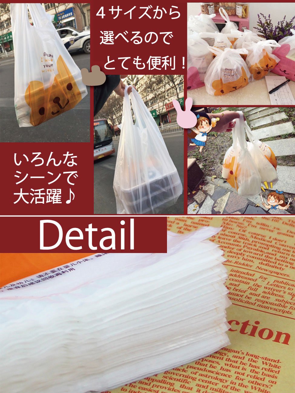 L size: length 47 cm × width 26 cm × side gusset 12 cm Thickness: 0.016 mm