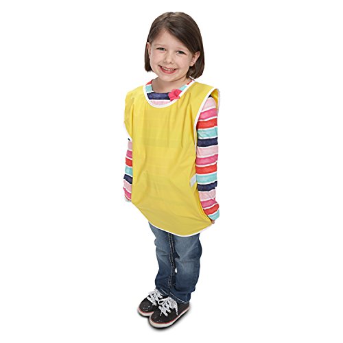 Keep kids clothes clean and mess free without hindering their creative flow with these top notch KinderSmocks. Easy over the head design, and fast Velcro closures on the sides will have your little artist creating masterpieces in no time. Made from yellow vinyl, these easy to clean smocks are the perfect solution for keeping art time spills off clothes. Generously sized to fit ages 3 to 8.Feature