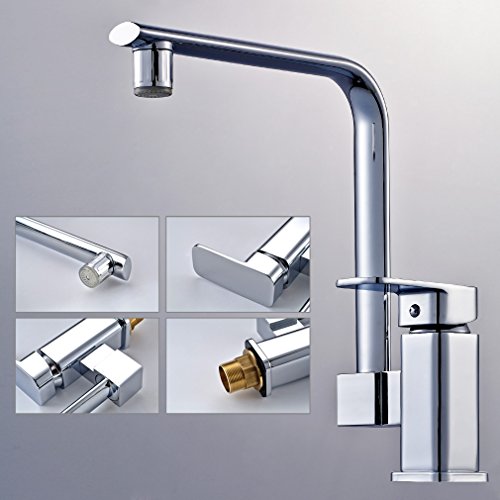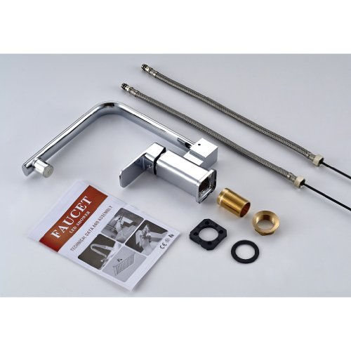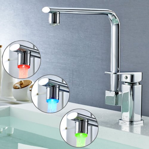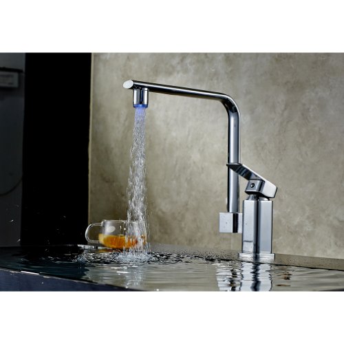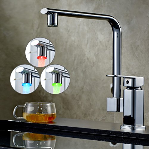 ROVATE 360 Degree Swivel Kitchen LED Sink Faucet , Brass Single Handle Single Hole Mixe Faucet, Chrome