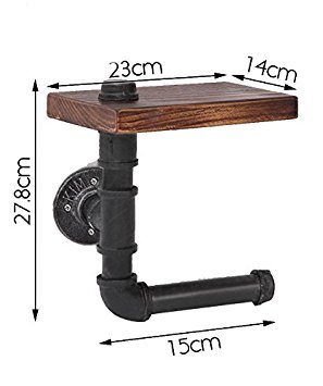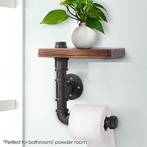 DIY Industrial Retro Wood & Black Pipe Metal Wall Mounted Bathroom Shelf Toilet Paper Roll Holder Storage Shelving
