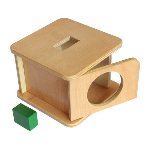 Product DescriptionThis wooden toddler imbucare box includes a box with a door, and a green, rectangular prism.0
