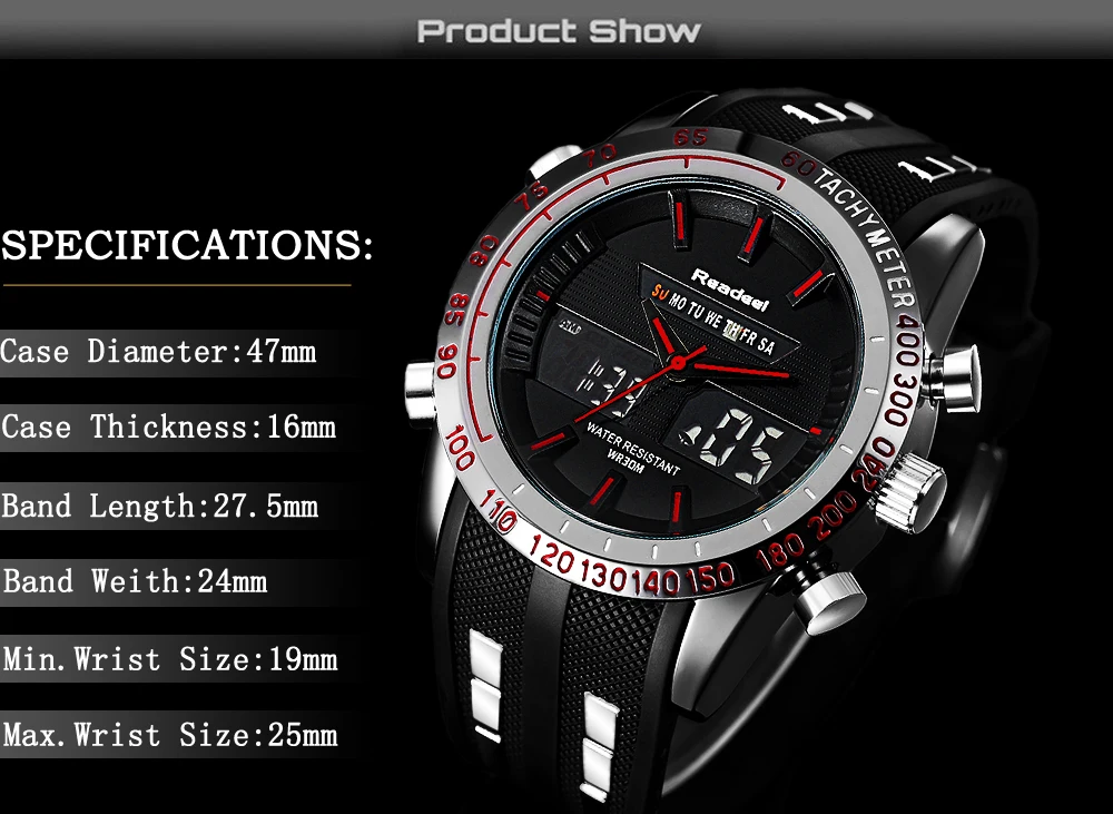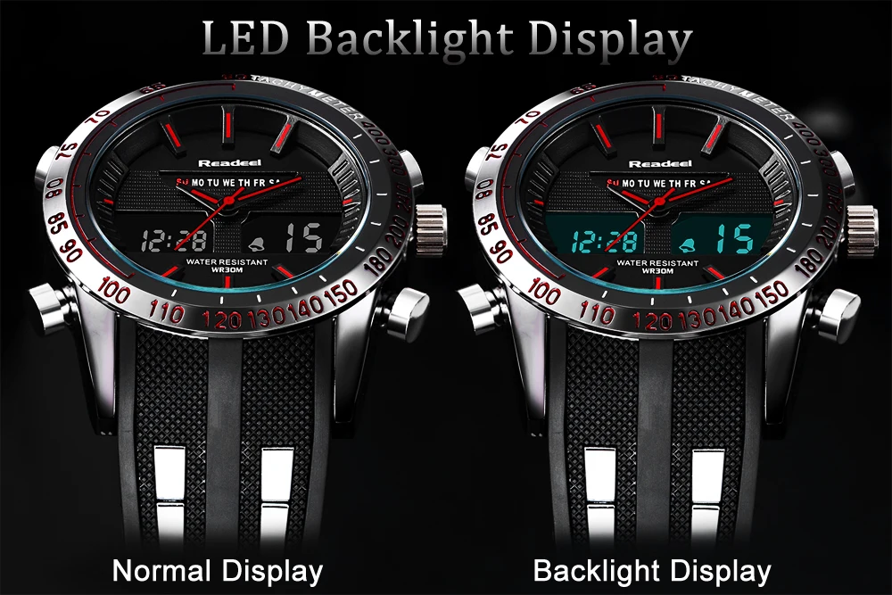 Feature:LED display,Multiple Time Zone,Stop Watch,Back Light,Complete Calendar,Shock Resistant