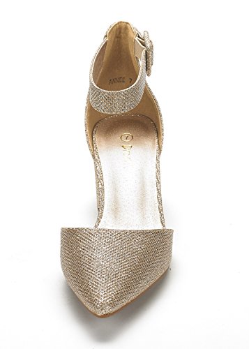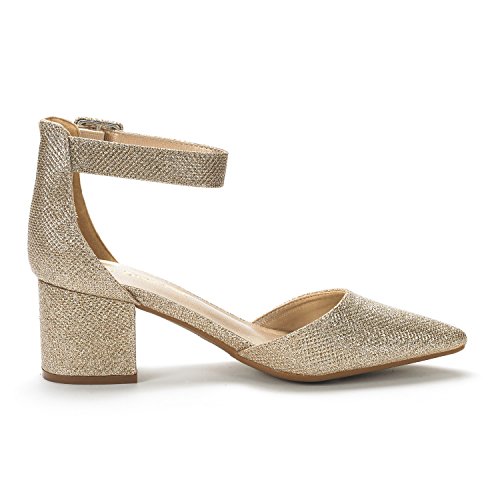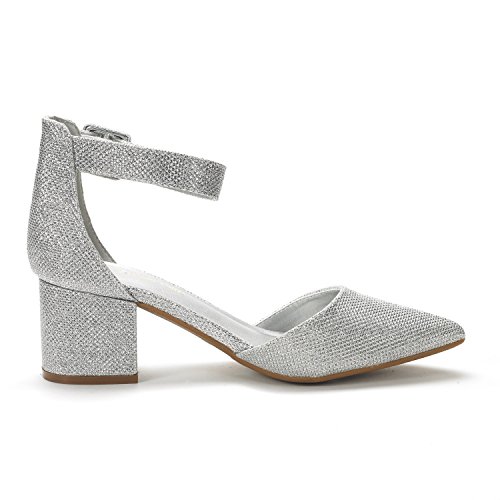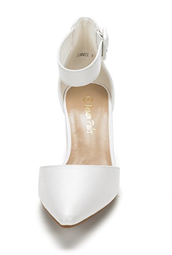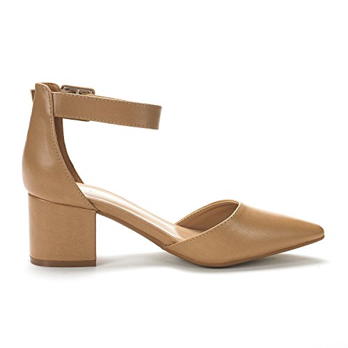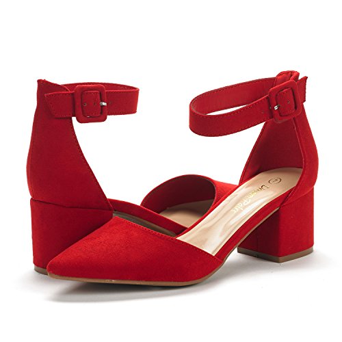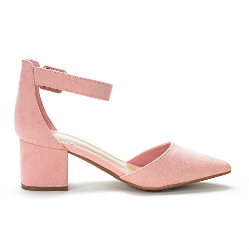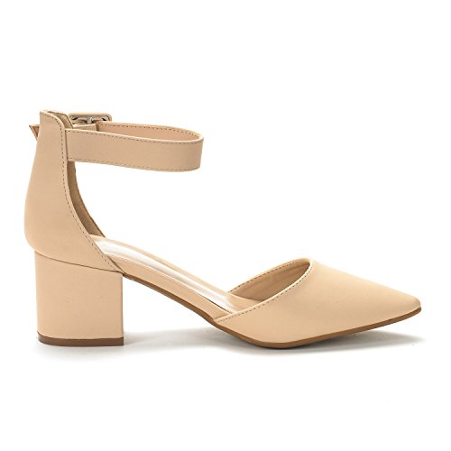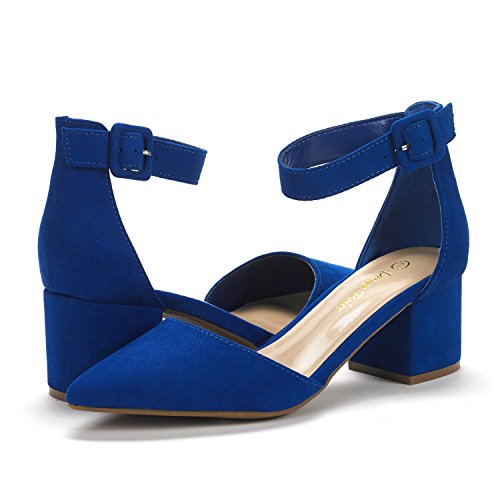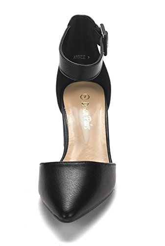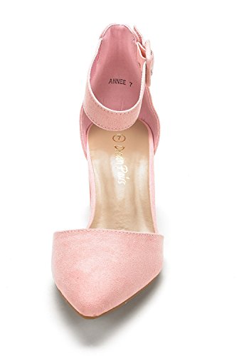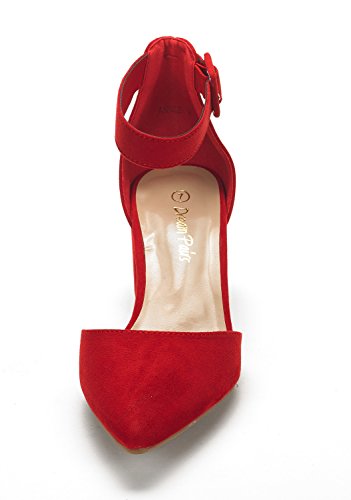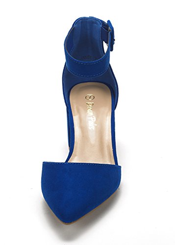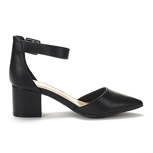Product Description This style can be for just about any outfit with designs to help accentuate your legs and highlight your creative and fashionable look! Closed pointed toe heels are designed in smooth vegan leather/suede and feature a single toe strap, exposed sides, and adjustable buckled ankle strap closure. 0