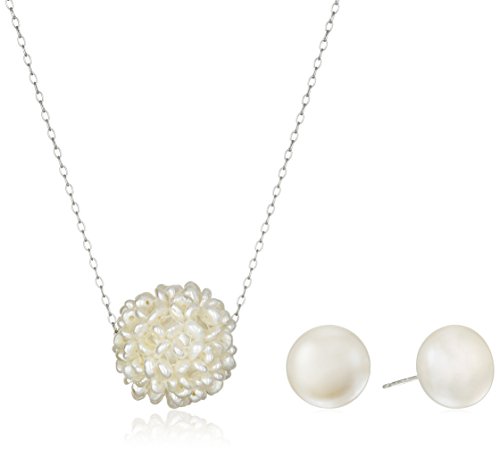 -. Title : Sterling Silver Snow Ball White Freshwater Cultured Pearl Pendant Necklace and Stud Earrings Jewelry Set