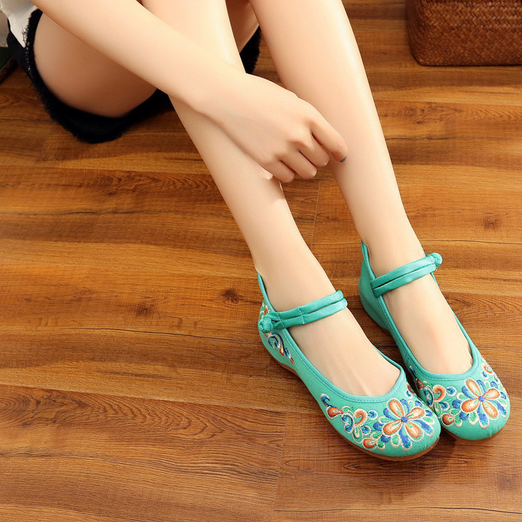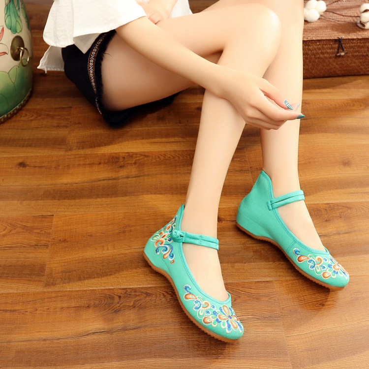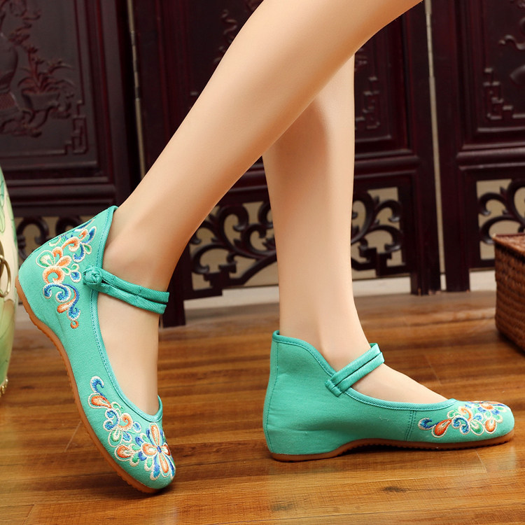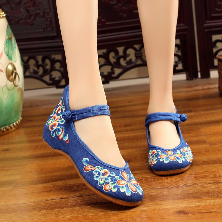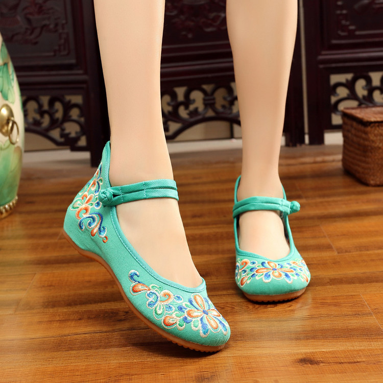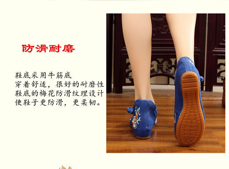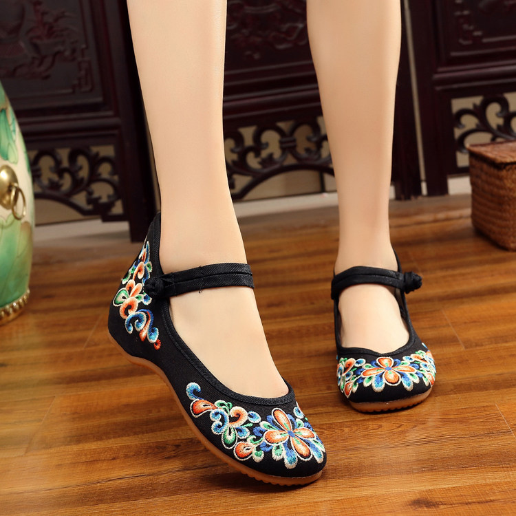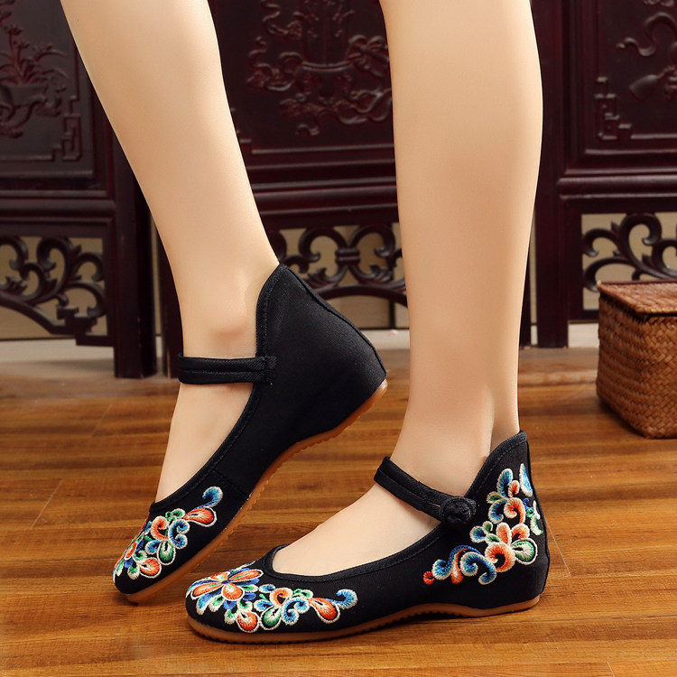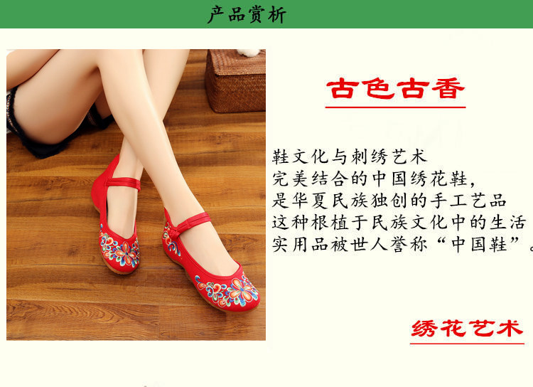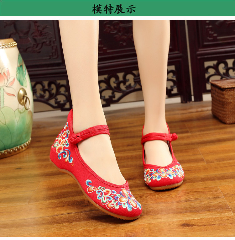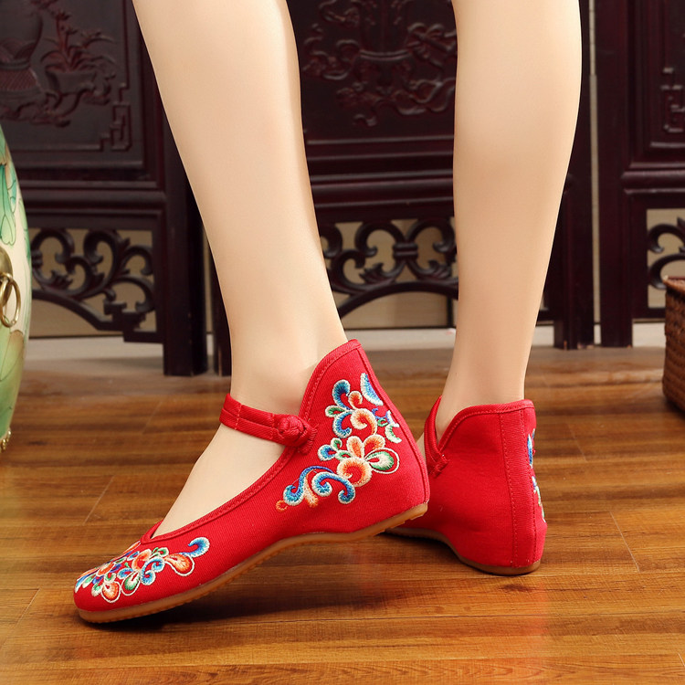 红色古风鞋子女汉服鞋绣花鞋绣花鞋女结婚中式内增高平底中国风布