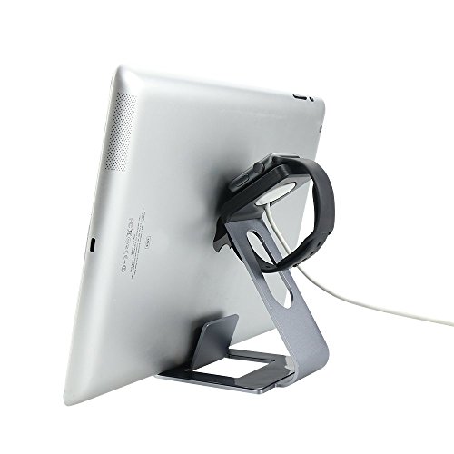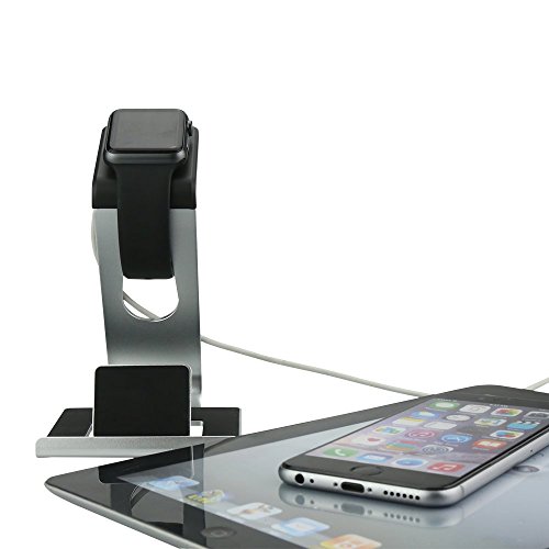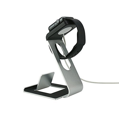 - Feature : Made for Apple Watch - Premium-grade aluminum Apple watch stand specifically designed to work with Apple Watch, Watch Sport & Watch Edition for both 38mm or 42mm watch sizes / Access to all functions and operations. / Note: charging cable & band & watch case & watch are NOT included / Unique dual support for phone and apple watch.Padded TPU supports so the device never contacts with any metal. / Raised front face for back support to charge the phone.
