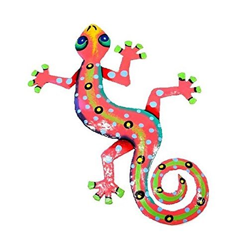 Recycled Metal Gecko Wall Plaque (Pink)