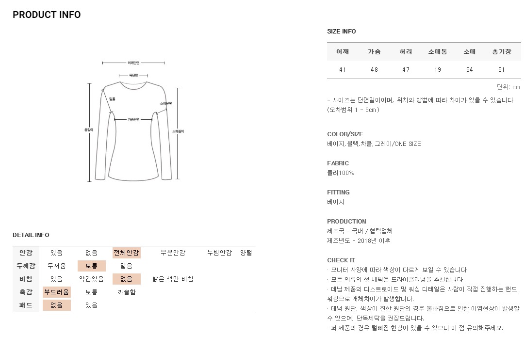 실키한 안감으로 이너에 붙는 털 빠짐 걱정을 덜어주었어요