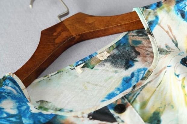 レトロでゴージャスな水彩プリントの前ボタンロングワンピースです♪