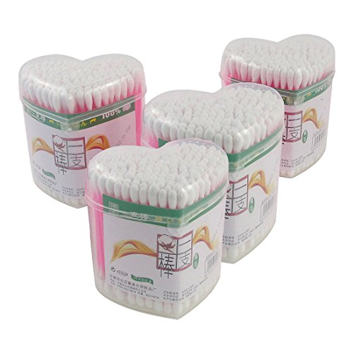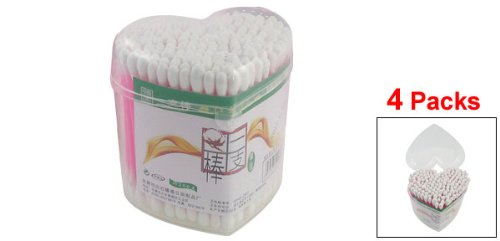 4 Packs Heart Shaped Box Double Ends Makeup Cotton Buds Swabs Swab Pink