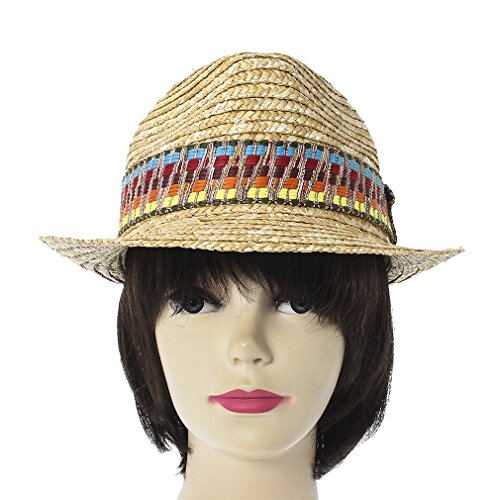 -. Title : Bigood Men and Women Bohemia Beach Hat Colorful Striped straw Hat
