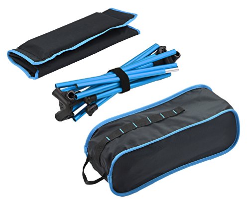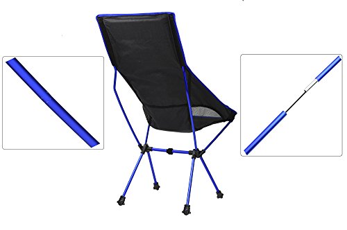 Our seating fabric is made of sturdy ripstop nylon which is dense and durable without deformation after long use. Four pole pockets at the back of fabric are reinforced to ensure no puncture in normal use. Seat frame is made of aircraft grade anodized aluminum which can be used in a variety of harsh environments for long time without distortion, fading or rust. The carrying case is with handles and additional tie down straps which make you easy to attach it to backpack and attach stuff to the chair. The wide feet can prevent chair to sink into mud. Shock cords connect to all aluminum poles, which is simple to set up and fold down. After you master the assembly method, it usually takes only a minute to complete the assembly.