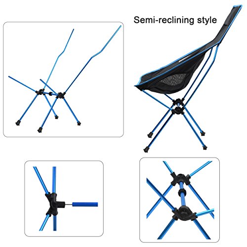 This lightweight chair is semi-reclining style, with built-in pillow can provide you support for back and neck, which is more suitable for longer time rest in outdoor garden rest, camp, beach, picnic, festival party, tailgating, trekking, fishing, motorcycling and sports watching. Its foldable and compact structure makes you easy to carry and store. Durable material makes you reliable to relax. Your comfortable and wonderful outdoor experience is our biggest wish.