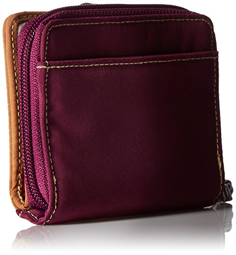 PERFECTLY SIZED: Our Lighten Up RFID Pocket Wallet measures 4.5 x 4 inches with faux leather trim, 1 exterior slip pocket, 1 zip pocket, zippered coin pocket, 5 interior card slip, 2 ID windows, and 1 bill pocket all within a snap and zip closure