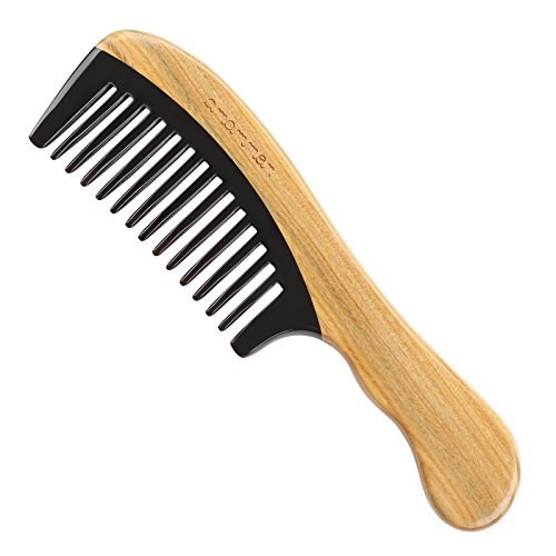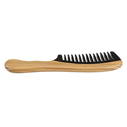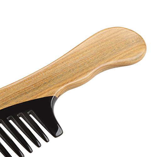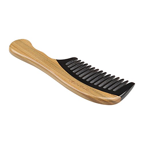 Amammon Sandal Wood Black Ox Horn Comb - Anti Static Natural Detangling Hair Comb - Handmade Premium Quality Natural Wide Tooth Wave Handle -...