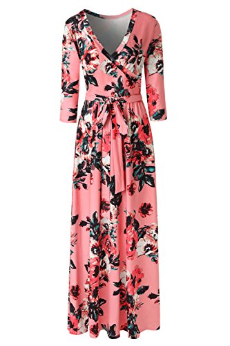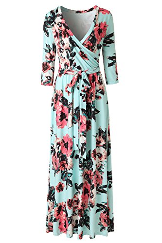 Zattcas Womens Floral Print 3/4 Sleeve Faxu Wrap Long Maxi Dress with Belt What we love most This plus size maxi dress is one of our favourite fall maxi dress! What we love most is that it is slim fitted on top and flare at the bottom,it shows your curvy perfectly! The bottom parts has proper flair,not too much but flattering over your midriff,could hide your little belly well,roomy for hips.
