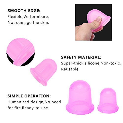 Cupping therapy has a long history in China, our cupping is improved after the latest technology, use secure and reliable silicone material, you can use in the home, can enjoy professional treatment of body.It can improve blood circulation, improve immunity,have good health care, especially lose weight, relieve muscle fatigue, improve skin condition and sleep problems.Simple operation, safety, extensive application of beauty, health and other fields. HOW TO USE: 1.Apply cream or nourishing cream or oil to you skin. 2.Place the silicone cup's mouth on the skin and gently squeeze to create a vacuum .Gently lose your hand. 3.Repeatedly press1-2 times to adjust the suction. 4.Use your hands to move the cup smoothly, in a straight, circular, and zigzag movement. 5.It's best to massage for 5-10 minutes every time,then open the edge,gently remove the cup. Package Content: 1 Large body cupping (Diameter: 2.76 in / High: 3.15 in) 1 Medium body cupping (Diameter: 2.17 in / High: 2.17in) Color: PINK NOTICE: 1.Reaction after cupping--purple spots ,blood stasis or red spots appear on the surface of the skin. 2.Some groups are not suitable for cupping therapy, such as heart disease, pregnant women, and patients with skin diseases. Consult a doctor before using if you are indeterminacy. 3.If uncomfortable, please stop using. 0 |