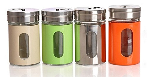 Stainless Steel-Over-Glass Spice Jar with 3-Size Shaker Top - Spices, Herbs, Seasonings Glass Spice Shakers, Glass Jars, Storage Organizer