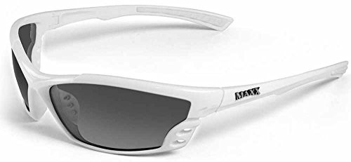 * Maxx High Definition Lenses * The value of the HD Lenses are as follows: * Shatterproof polycarbonate * No peripheral distortion * Filters out the blue portion of the light spectrum * Other colors become more vibrant * Greatly improves contrast * Enhances clarity; sharpens details, even at a distance * Improves depth perception * Drastically reduces glare and haze * Helps your eyes to relax * UV400 rated - provides 100% protection from UVA & UVB rays * Manufactured in an ISO 9000 & 9001 certified factory Color: White frame with smoke polarized lensesFeature