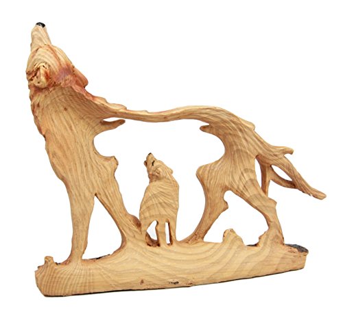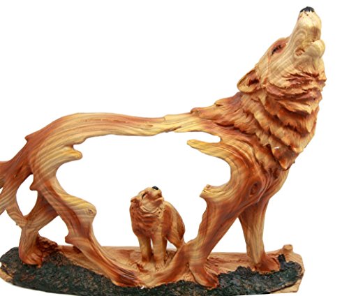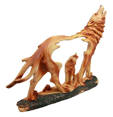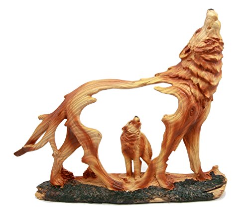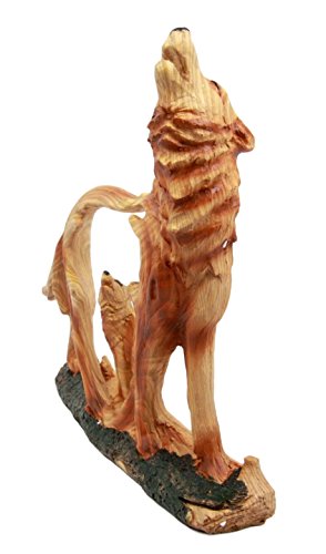 Atlantic Collectibles Wildlife Woodlands Scene Blood Moon Howling Gray Alpha Wolf Figurine In Faux Wood Finish