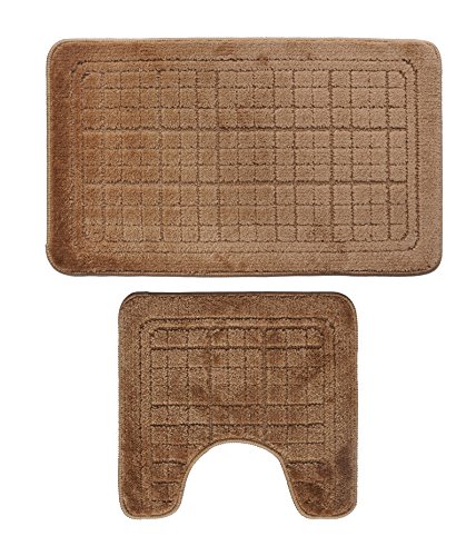 Bathroom 2 Pieces Bath Rug Pedestal Mat Set Contour and bath mat Tan