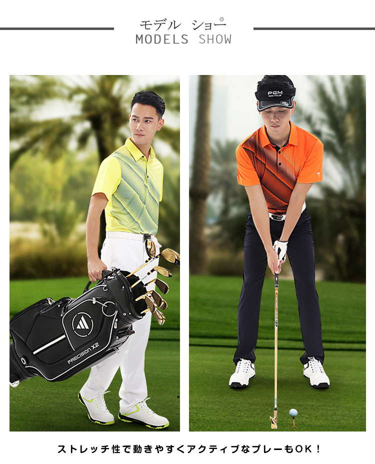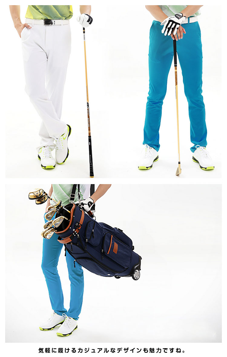 | ストレッチの効いた抜群の履き心地でゴルフが楽しめるハイクオリティーなゴルフパンツ! ストレッチ性で動きやすくアクティブなプレーもOK!気軽に履けるカジュアルなデザインも魅力ですね。綺麗なシルエットでスタイルUP!も期待できそう♪♪ | |