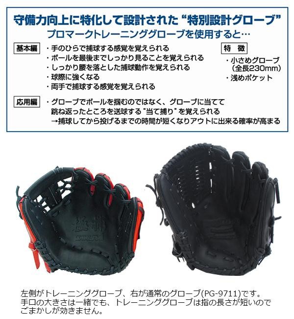 常に守備力アップのために練習し、上を目指すプレーヤーのために作られた「守備練習専用」トレーニンググローブです。通常のグラブよりも指の長さが短いのでごまかしが効きません。 |