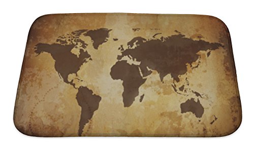 Gear New No Slip Microfiber Memory Foam Vintage Map Bath Rug Mat, 24" X 17"