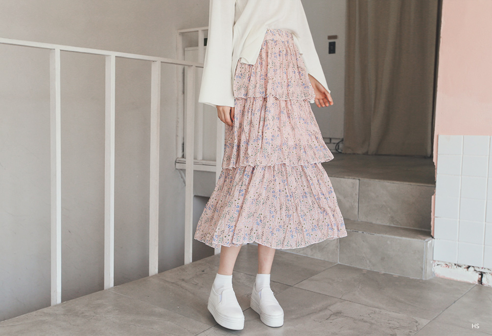 러블리한 무드가 느껴지는 플라워 캉캉 플리츠스커트!!