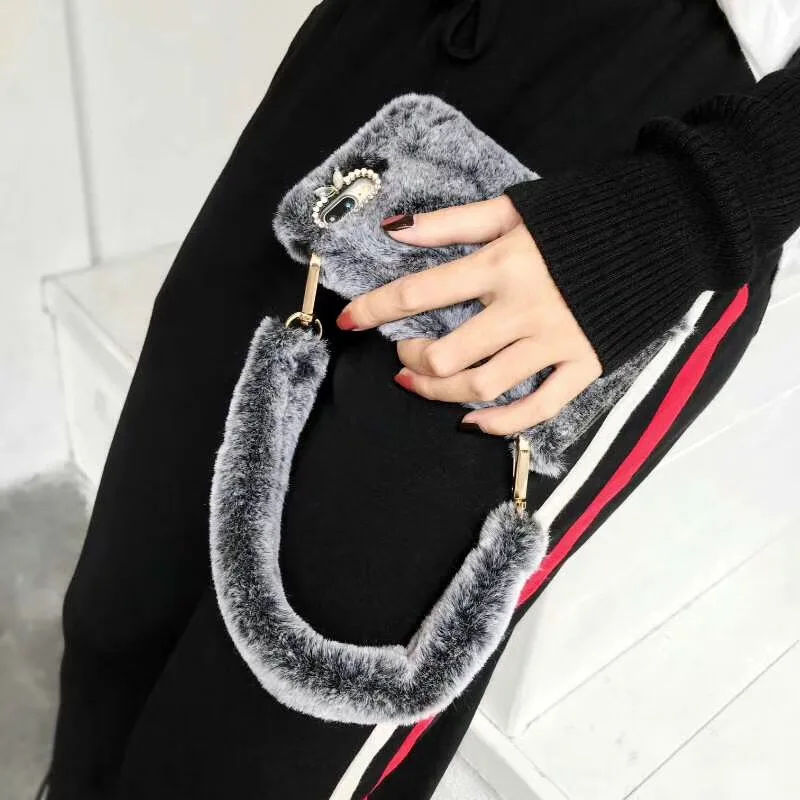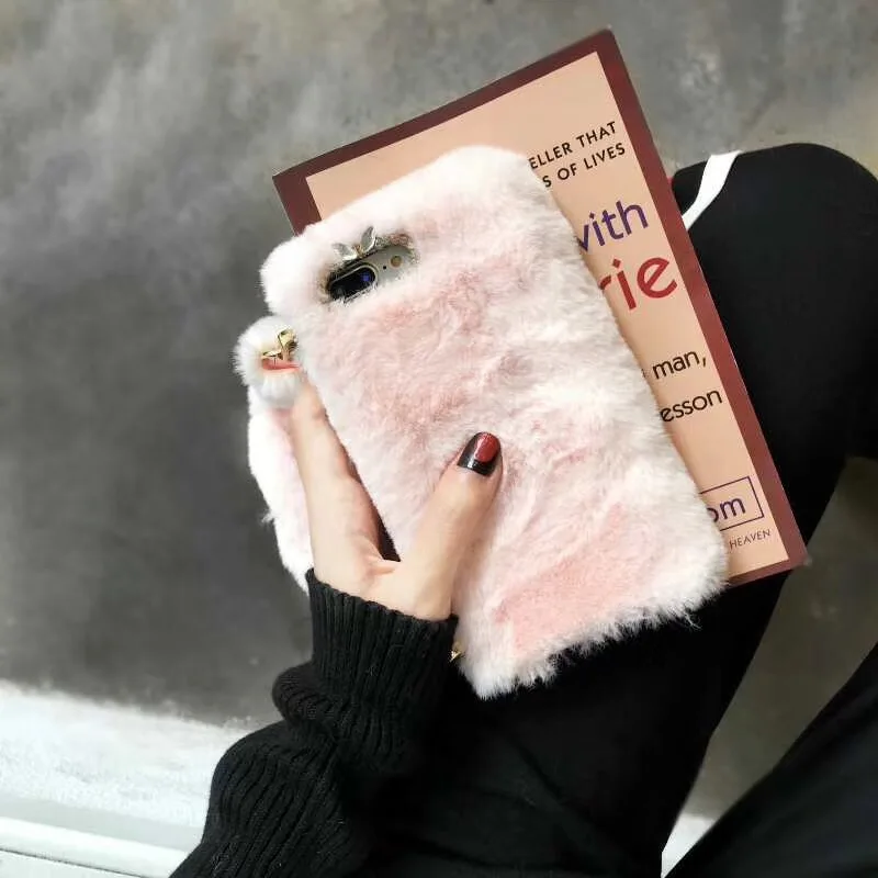 Features:Super Cute Fashion Winter Warm Rabbit Fluffy Fur Case