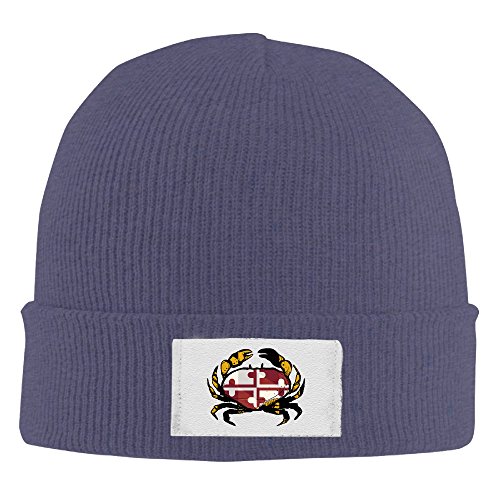-. Title : Winter Maryland Flag Crab Beanie Hats Men Black Elastic Rib Knit