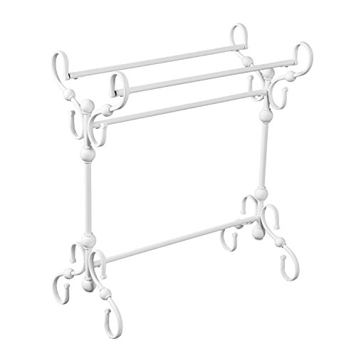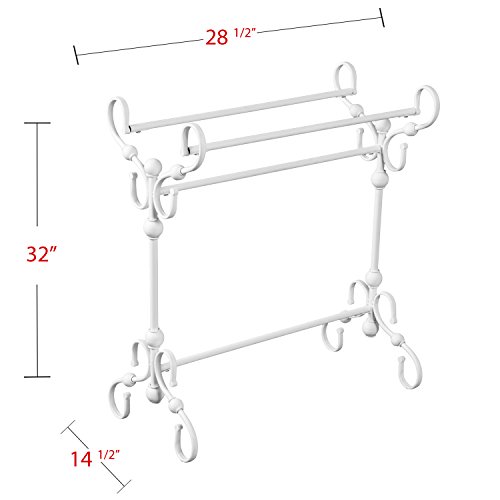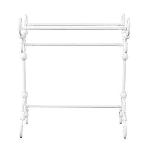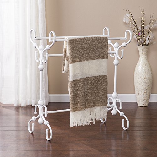 Studio : Furniture HotSpot Publisher : Furniture HotSpot Product Description Display your heirloom quilts or keep your favorite cozy comforters close with this white blanket stand. Three tiers of convenient storage create the ideal throw blanket holder for your living room or quilt stand in your spare room. Comforter rack's elegant scrollwork adds the warmth of traditional style to every room in your home.
