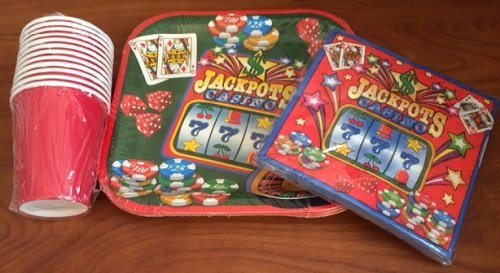 Carsino Card Party Pack. Includes Paper Plates, Napkins Cups.