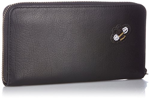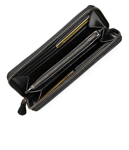 Coach Souvenir Embroidery Grain Black Leather Accordion Zip Wallet, 58485