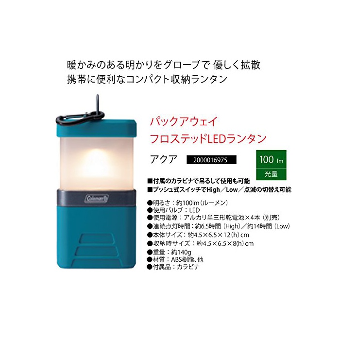 원본상품명: コ?ルマン ランタン パックアウェイフロステッドLEDランタン アクア 2000016975