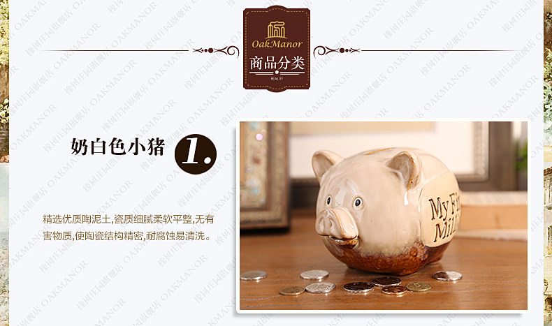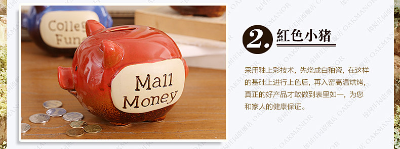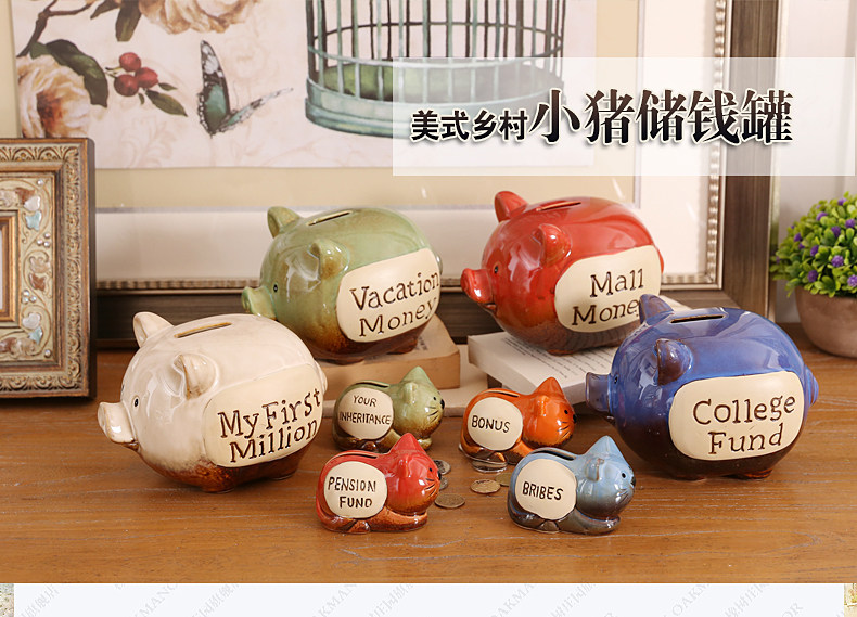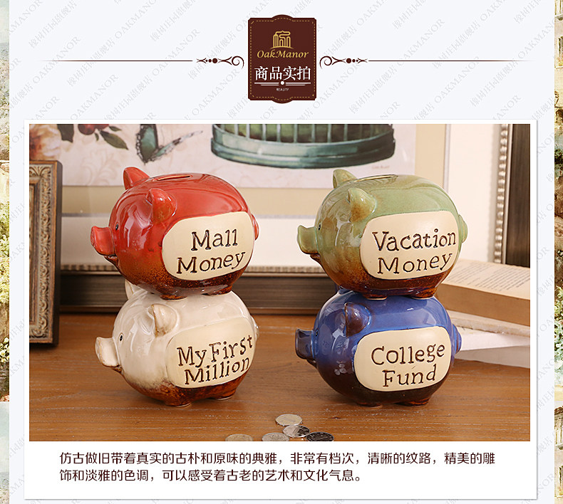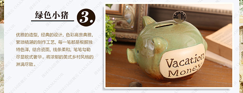 可爱萌版动物猪储钱罐摆件 储蓄罐陶瓷工艺创意生日礼物