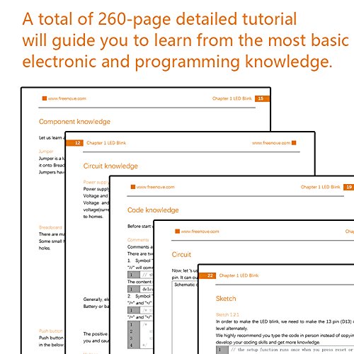Tutorials and codes: This kit contains 2 detailed tutorials(PDF), one(Tutorial.pdf) for learning Arduino, another(Processing.pdf) for Interacting with Processing.