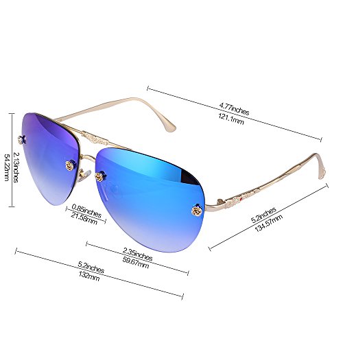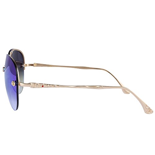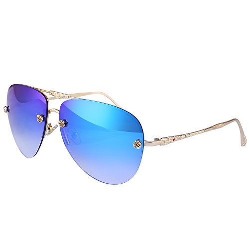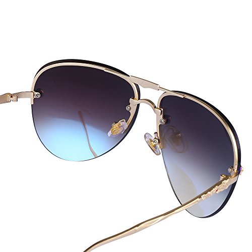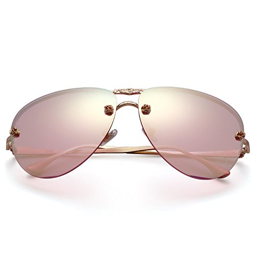 -. Title : Menton Ezil Retro Fashion Rose Rivets Aviator Sunglasses Gradient Mirror Shades Rimless Gold Metal Frame UV Protection