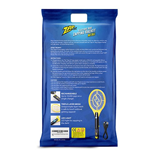 Zap-It! Mini Bug Zapper - Rechargeable Mosquito, Fly Killer and Bug Zapper Racket - 3000 Volt - USB Charging, Super-Bright LED Light to Zap in the Dark