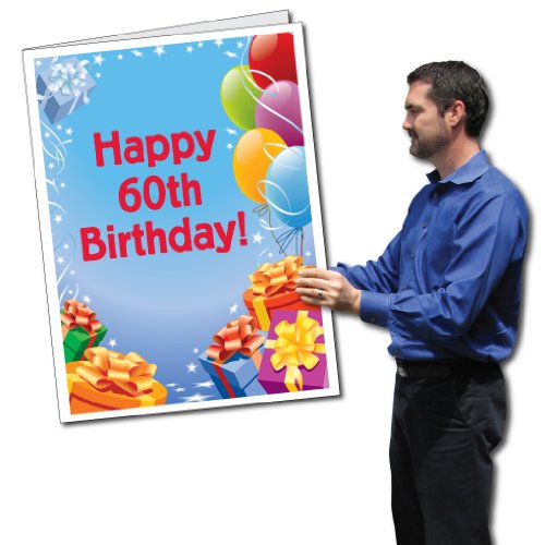 2'x3' Giant Presents and Balloons 60th Birthday Card, W/Envelope